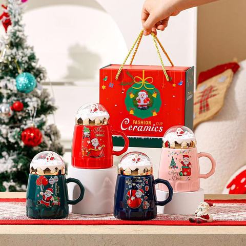 卸売カスタムかわいいセラミッククリスマスマグサンタクロースセラミックマグ漫画蓋ギフトボックスセット